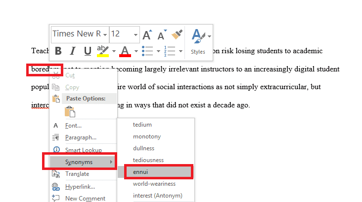 Pretty good, but we can make it sound even more academic. Again, use the Word synonym function, and try to bring out the parallel structure even more: